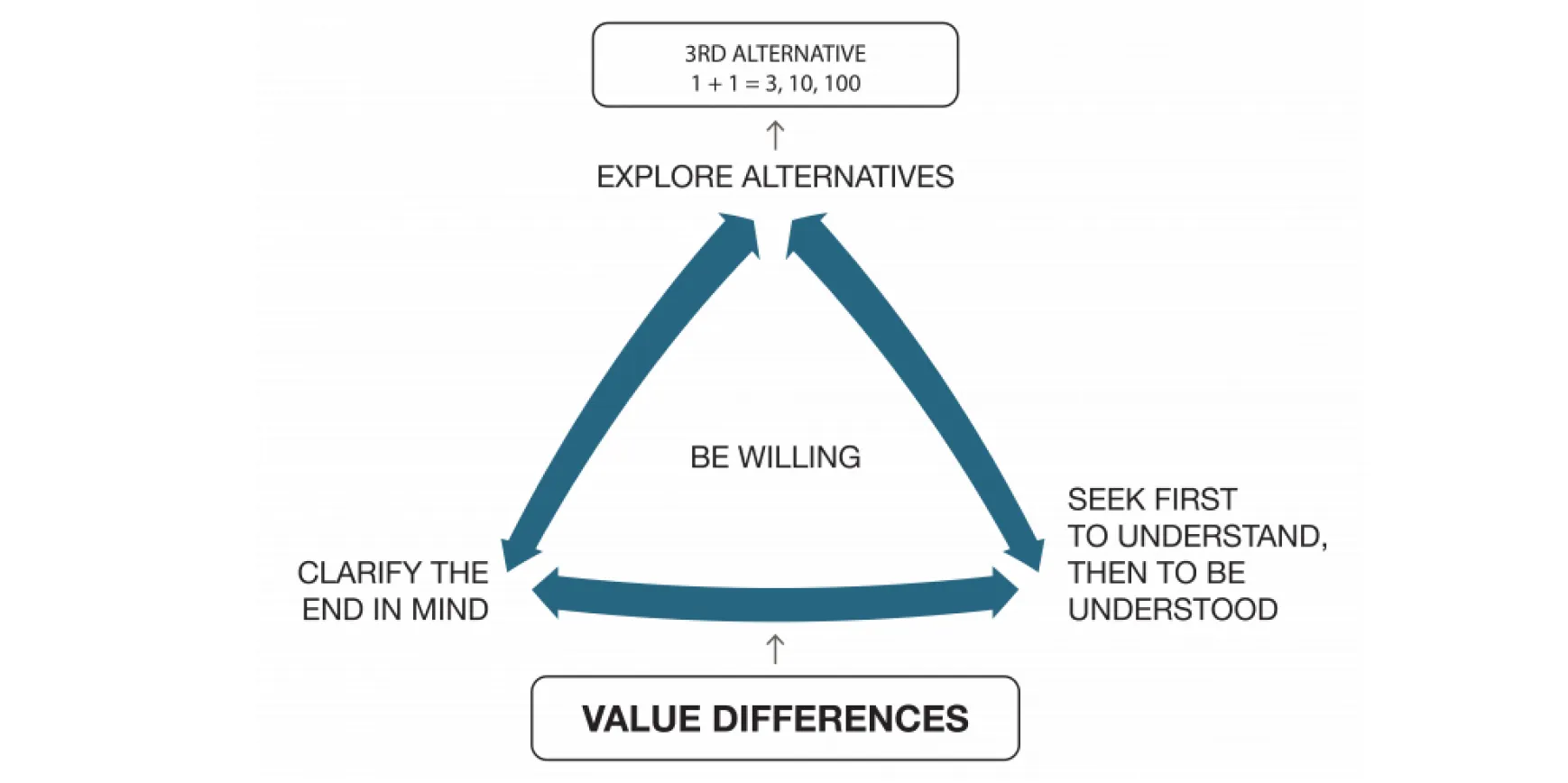 Covey explains, “Respectful communication works in independent situations and even in interdependent situations, but the creative possibilities are not opened up. In interdependent situations compromise is the position usually taken.